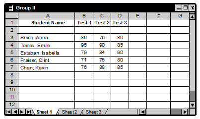 - explain the significant steps necessary to modify the spreadsheet above so that the average test grade for each student is displayed.