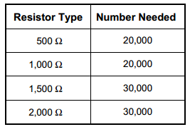 A manufacturer of electrical resistors with one assembly line has an order for the types and numbers of resistors listed in the table above. The resistors must be shipped in one month. Which of the following manufacturing processes is most appropriate for meeting this order?